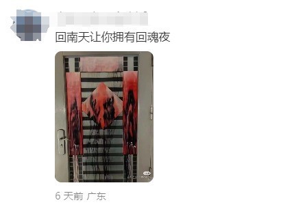 这不是血,只是对联被水汽打湿后掉色了,有人留言:“看到这里我以为是案发现场”。